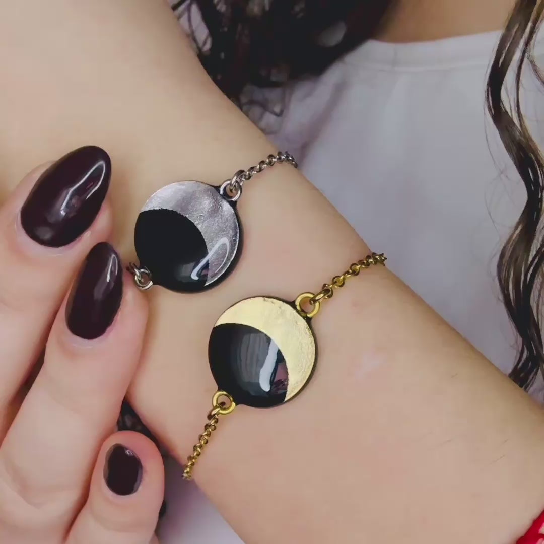 Bracciale Minimal in Acciaio Argentato o Dorato con Fasi Lunari